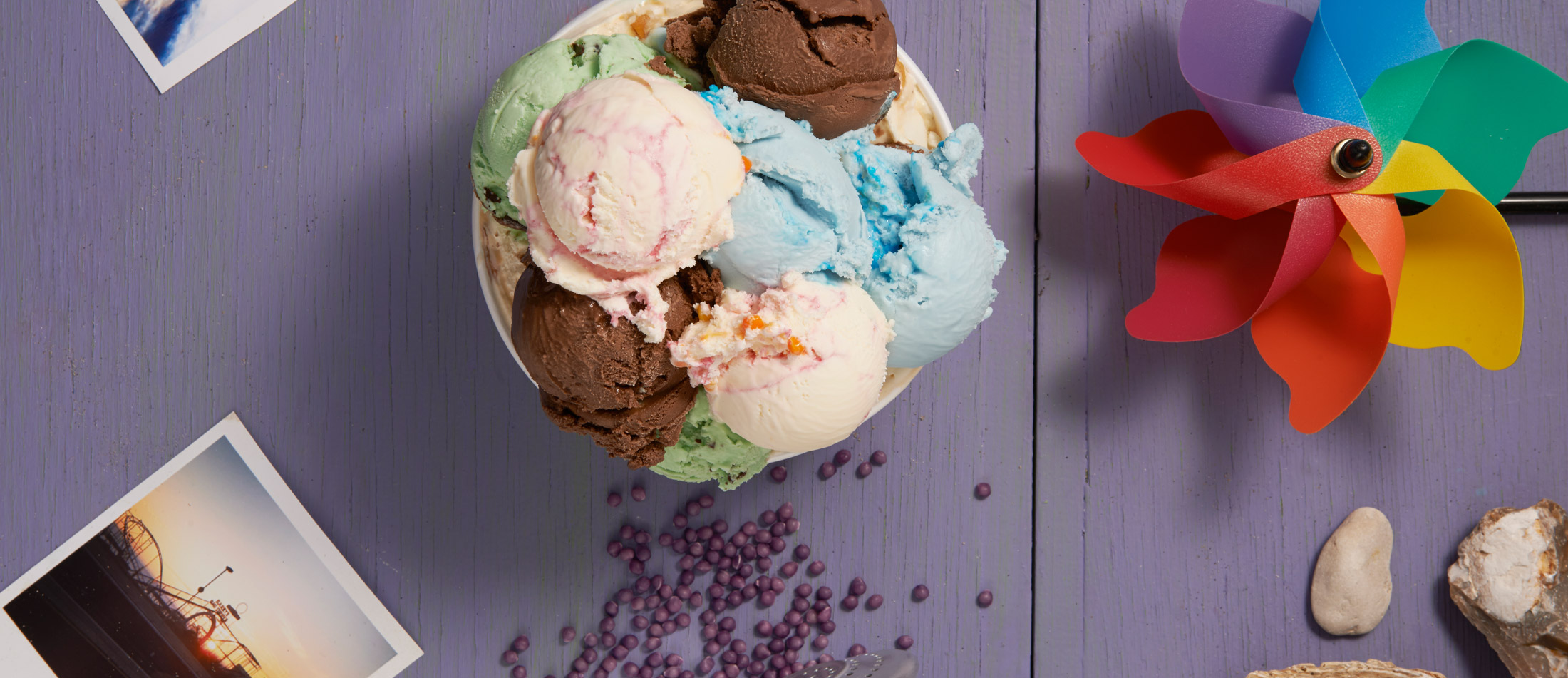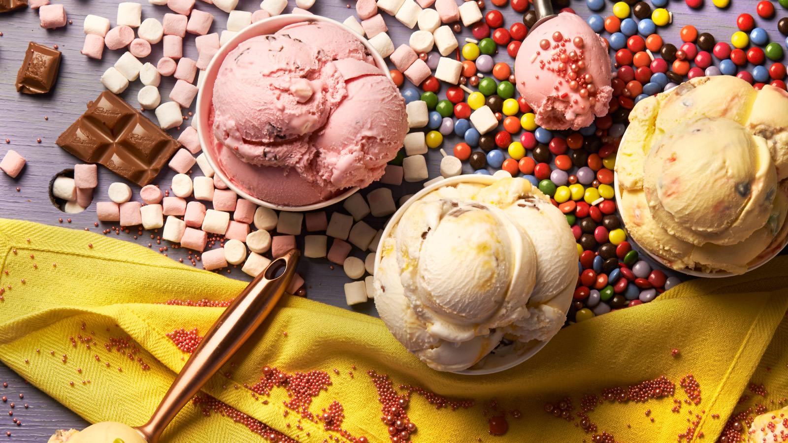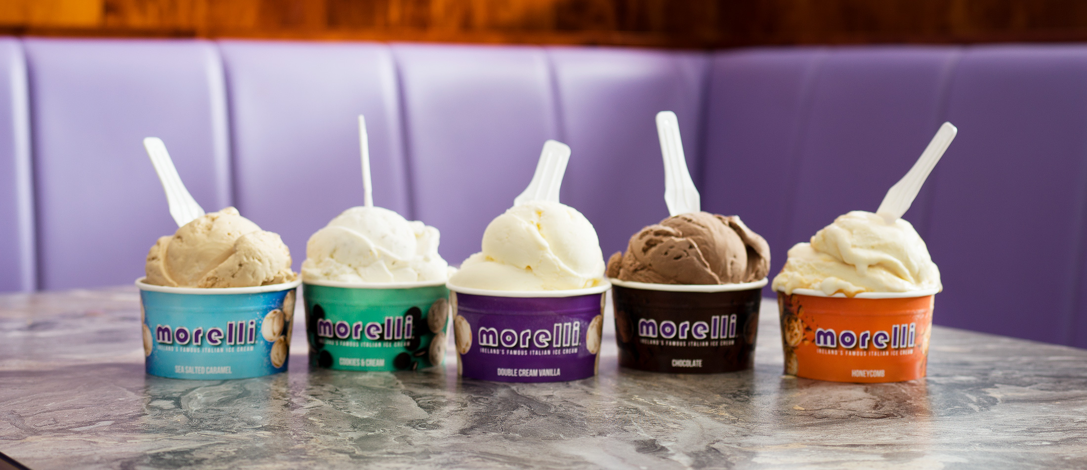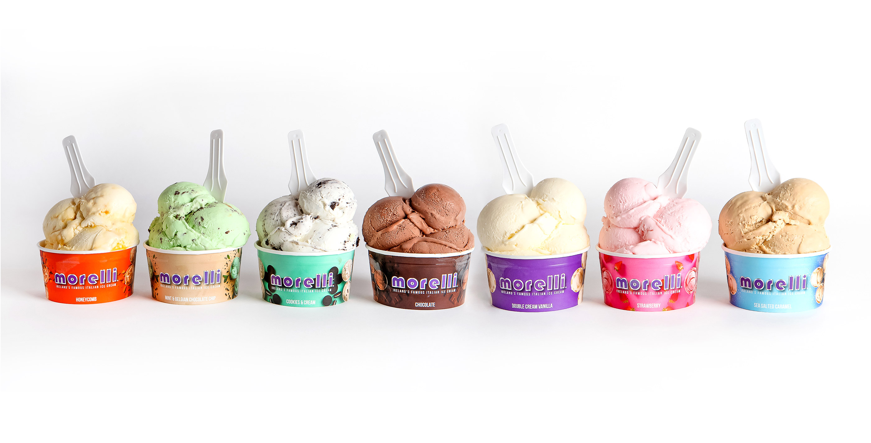 Double Cream Vanilla, Honeycomb, Raspberry Ripple, Sea Salted Caramel, Belgian Choc Chip.